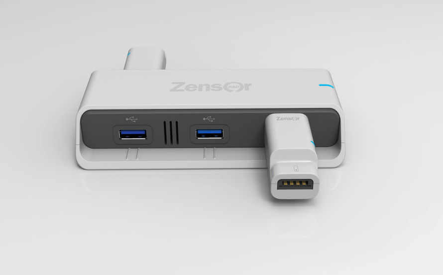 This professional medical testing device features a 'trapezoidal design' to facilitate easy USB insertion. The main body is white, symbolizing medical cleanliness and aesthetics, while the darker center helps prevent visible dirt buildup during use. The accessory device adopts a double-sided design: one side accommodates medical test strips, while the other allows for a USB connection, enhancing user intuitiveness and convenience.